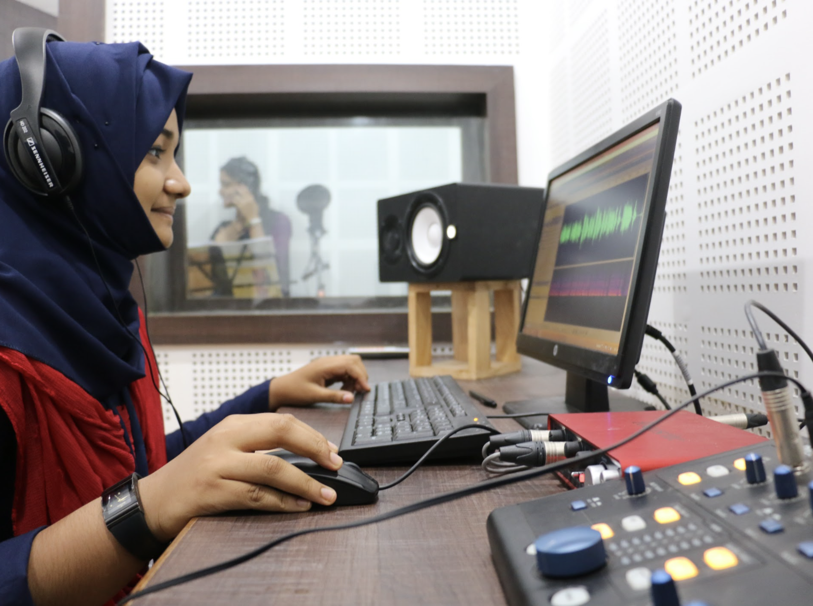 College has its own Recording studio which is thoroughly utilized for both Studies and Media content development activities. The Recording Studio provides an isolation booth for singers and for dubbing artists, and studio has a Control Room filled with the tools of the trade. Also it's a place for students to showcase their skills such as Dubbing, Voice recording, Singing and so on. Licensed software tools such as Adobe products and Pro Tool are used for audio editing.