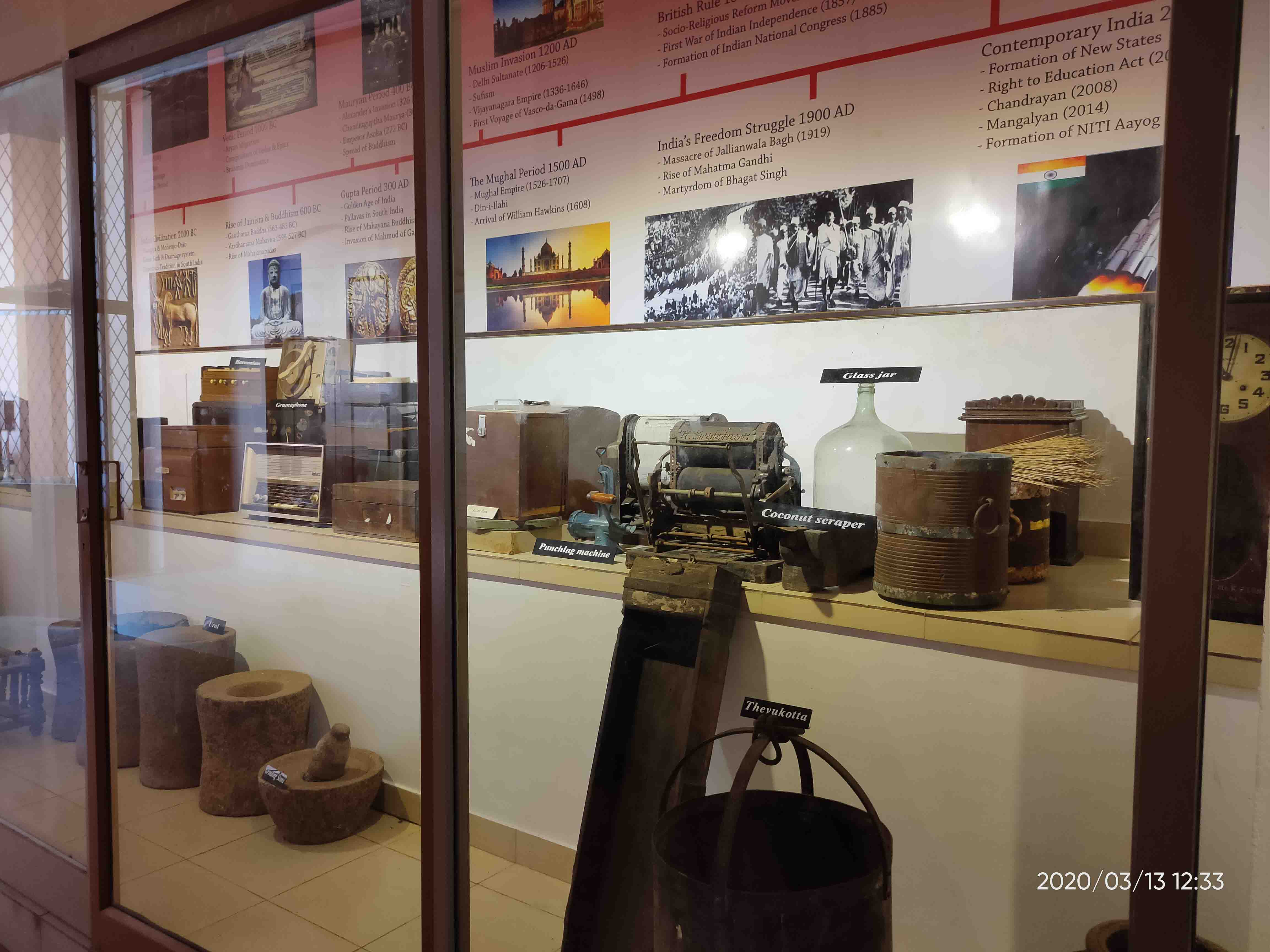 “Real museums are places where time is transformed to space” –Orhan Pamuk Heritage Museum was set up in 2003 under the initiative of then Principal, Sr. Philo James. It was started to preserve and showcase our rich heritage. The Museum includes antiques, artefacts and other historical remains. Megalithic monuments, old vessels, wine jars, piano (1902), Egyptian papyrus leaf, Kashmiri Carpet etc. which connects past with the present are the highlights of the Museum. Time line and wall paintings of monuments and art forms adorn the walls of the Museum. Galleries exhibit traditional household utensils, Musical instruments, age old agricultural tools and electronic devices and equipments. The museum was shifted to St Euphrasia St Chavara Block in 2015.
