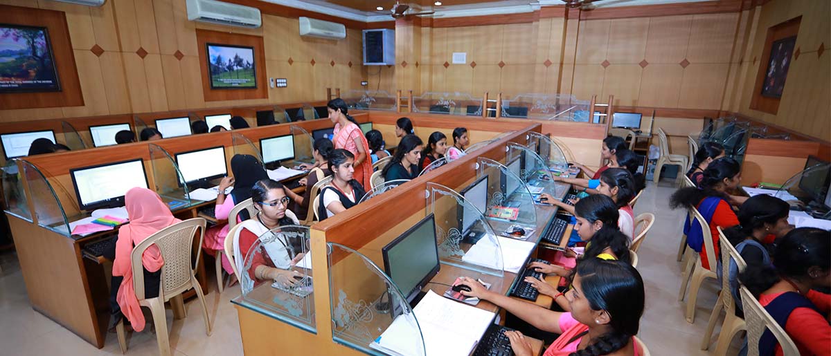 The Computer Science Lab is a centrally administered, wi-fi enabled computer programming lab equipped with 52 desktop computer systems. A dedicated server is used for data storage. Three 7.5 KVA UPS is maintained to to protect the systems from power failures. The lab is bifurcated as PG (MSc Computer Science) and UG (BCA) labs and used for teaching and learning purposes, specifically to conduct practical sessions as per course syllabus. On-demand internet facility is provided both for staff and students. Service of a technical administrator is available from 8.30am to 4.30 pm on all week days. The lab is equipped with licensed software products such as Microsoft Windows 12 Server, Microsoft Windows 10, Microsoft Office, Oracle 12c, Android Studio etc. apart from Open Source software tools such as Ubuntu Linux, Postgresql, WAMP etc.