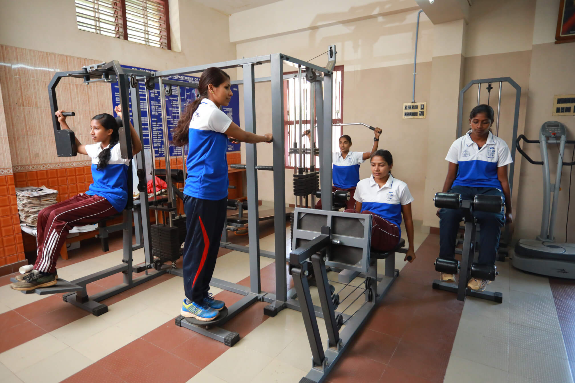 Health Hub is well equipped with Multi Gym, Tread Mill, Gym Ball, Vibrator, Leg Curls, Orbitrek, Disc Rack, Dumbbells, Bench Press Stand, Air Walker, Abdomen Crunch and Yoga Mats. Power and Weight Lifters perform their workout sessions at Health Hub. Other students and faculty can use the facilities of Health Hub for physical fitness. The Health Hub facility is extended to public (women) at a nominal fee.